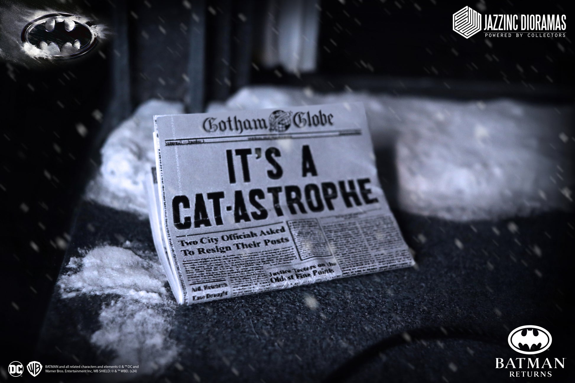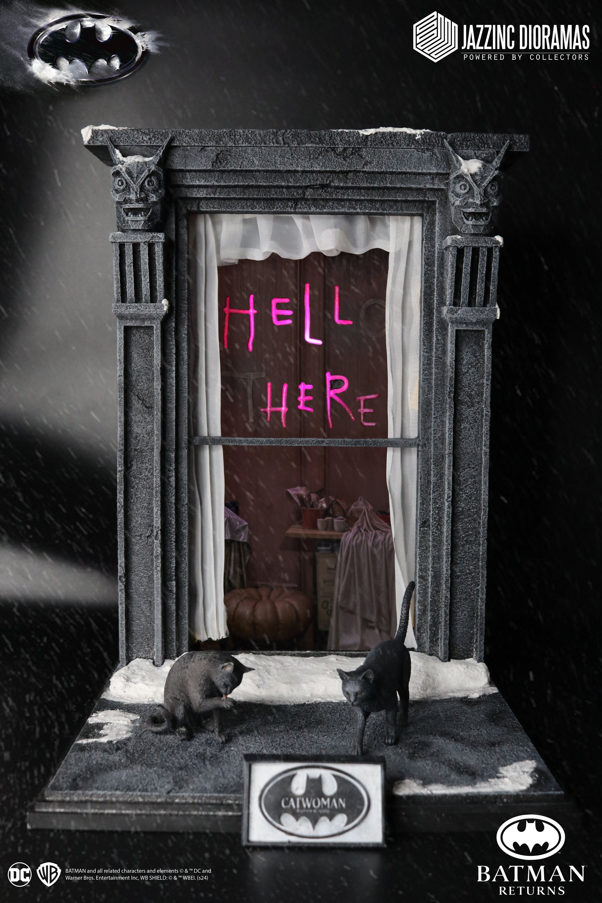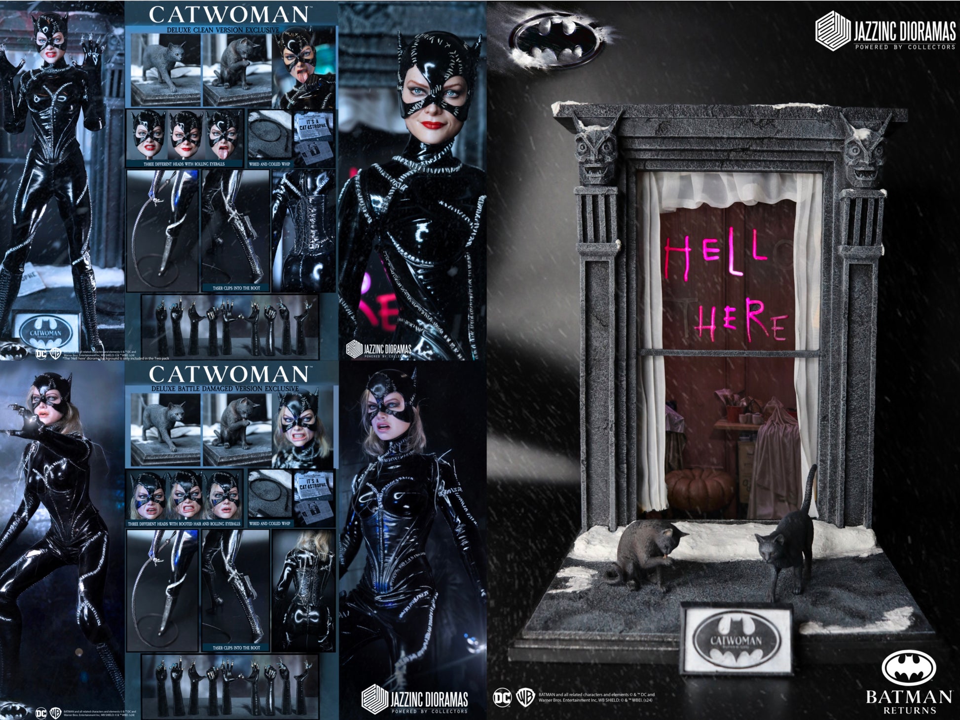 - Deluxe Clean Version - All the items listed above*, but swapping out the standard head sculpt with three exclusive deluxe head sculpts (Smirk, Meow, and Lick), a rolled whip, two non-poseable cats and a Gotham Globe newspaper.